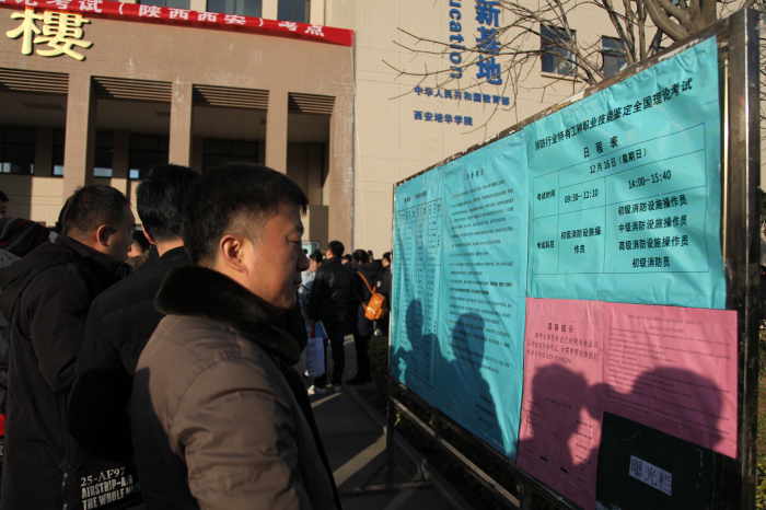 按照中國(guó)消防協(xié)會(huì)安排部署,12月16日,陜西省2018年消防行業(yè)特有工種職業(yè)技能鑒定第四次理論統(tǒng)考分別在西安培華學(xué)院長(zhǎng)安校區(qū)和延安市寶塔區(qū)柳林鎮(zhèn)柳林中學(xué)同時(shí)開(kāi)考。由中國(guó)消防協(xié)會(huì)委派的江西省消防總隊(duì)培訓(xùn)基地訓(xùn)練處副處長(zhǎng)熊星督導(dǎo)員來(lái)陜西省現(xiàn)場(chǎng)督考。